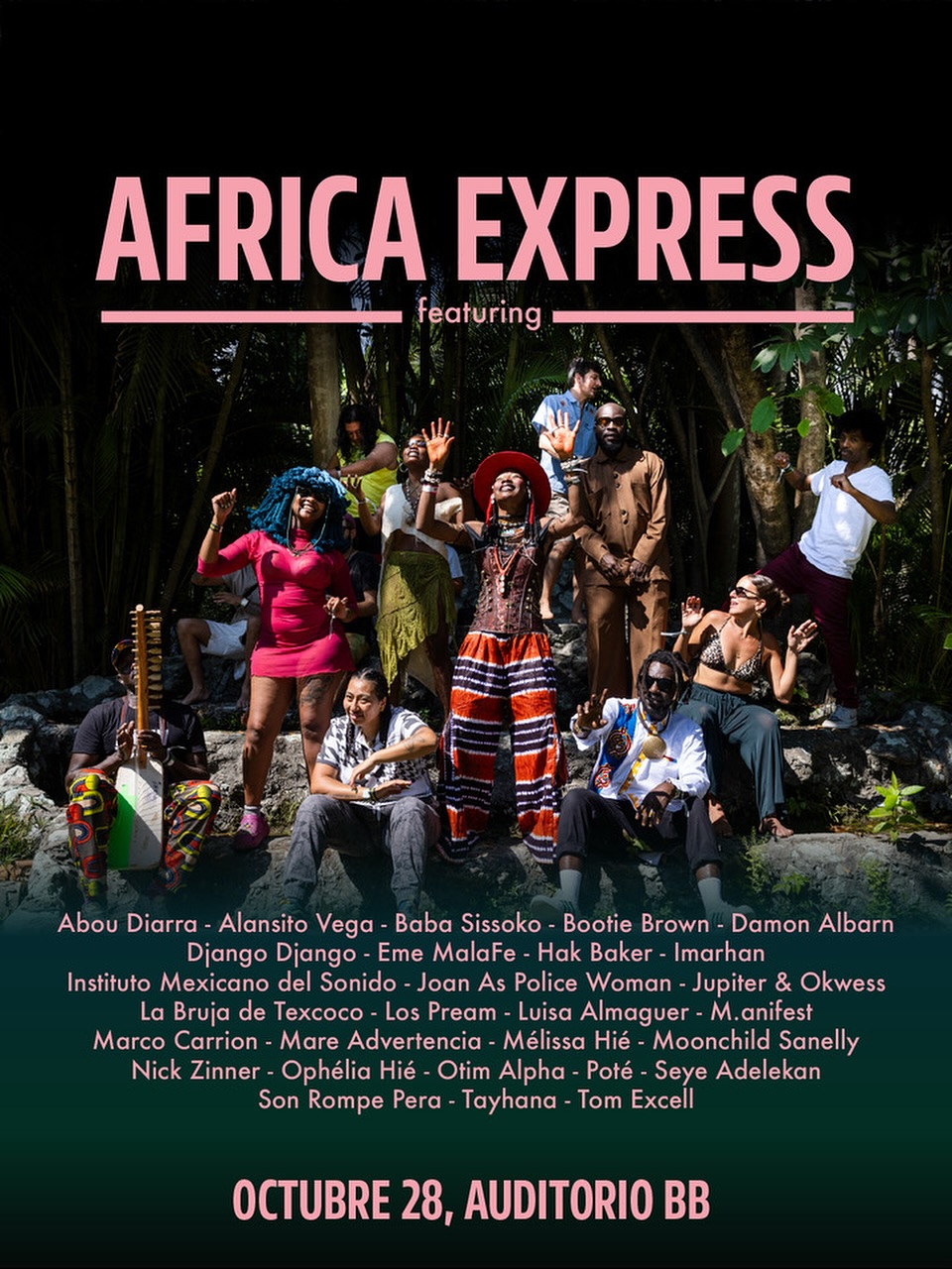Africa Express es una aventura musical en constante evolución, que explora nuevos límites sonoros. Basado en el respeto, promueve una idea simple, los seres humanos somos más fuertes cuando colaboramos, cuando nos comunicamos abiertamente y cuando aceptamos que todos tenemos algo que decir. Se trata de derribar barreras entre artistas de distintas naciones, géneros, generaciones y estilos musicales, uniéndose en una muestra de unidad. Esta visión se refleja perfectamente en el espíritu ecléctico del álbum. Cada show en vivo de Africa Express es único, lleno de momentos espontáneos de magia y colaboración que nunca dejan de sorprender. El espectáculo será una fiesta de cumbia, kuduro, salsa, hiphop, soul y pop. ¡No te lo puedes perder!