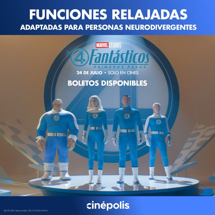 • LOS 4 FANTÁSTICOS: PRIMEROS PASOS y OTRO VIERNES DE LOCOS contarán con funciones relajadas en Cinépolis, disponibles durante dos fines de semana, en nueve complejos Cinépolis de México.