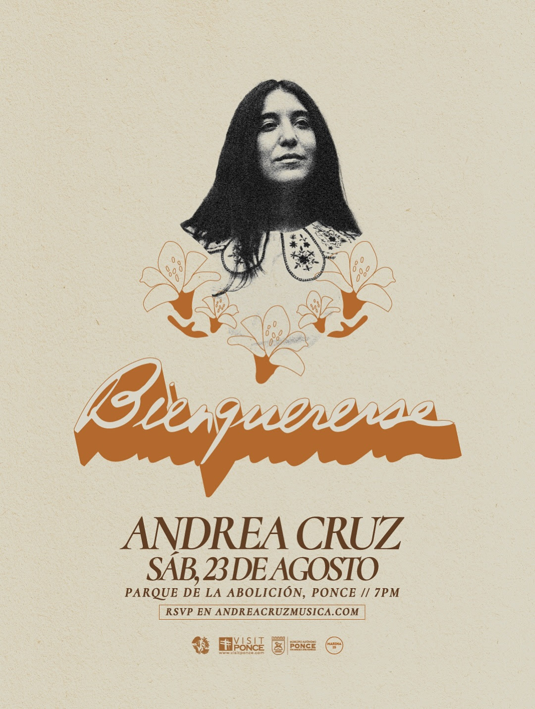 “Quiero que esta noche sea un junte para escucharnos, sentirnos y, quizás, resignificar los afectos, dejando que algo nos pase.” Para celebrar el lanzamiento de esta producción, Andrea Cruz invita un junte el 23 de agosto, en el Parque De La Abolición, en Ponce. Esta celebración traerá a la comunidad artistas de Puerto Rico y de Chile. En su mayoría, mujeres que han colaborado en Bienquererse, no solo como álbum, sino también en la elaboración de esos lazos que forman una comunidad sonora. El evento será libre de costo, como un regalo para el pueblo, desde las 7:00 p.m.