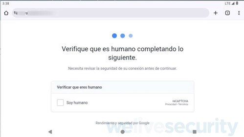 Al dar clic en el enlace, la víctima es dirigida a un captcha para verificar que quien está del otro lado no se trata de un bot sino de una persona real.