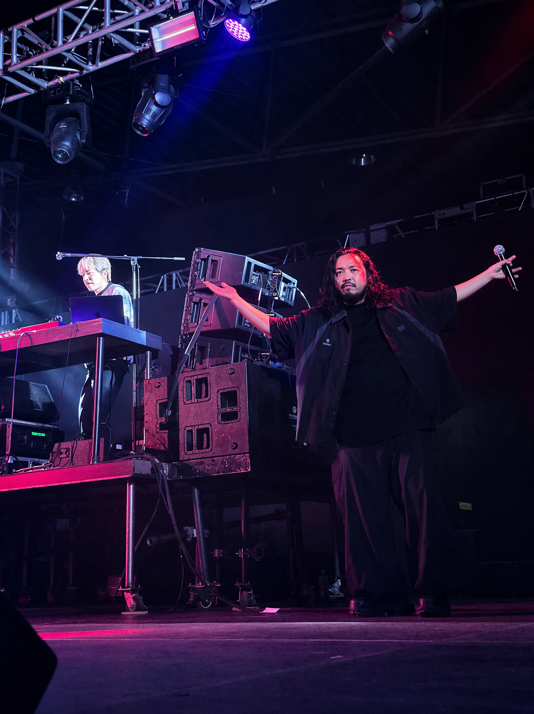 En su primera presentación en México, Creepy Nuts tomó el escenario del Pabellón Oeste del Palacio de los Deportes tras haber pasado por festivales internacionales como Coachella, y lo hizo con una seguridad que solo los actos consolidados pueden transmitir. El proyecto conformado por DJ Matsunaga y R-Shitei no tardó en conectar con el público desde los primeros minutos, impulsado por una mezcla de beats contundentes y una presencia escénica que no dio tregua.