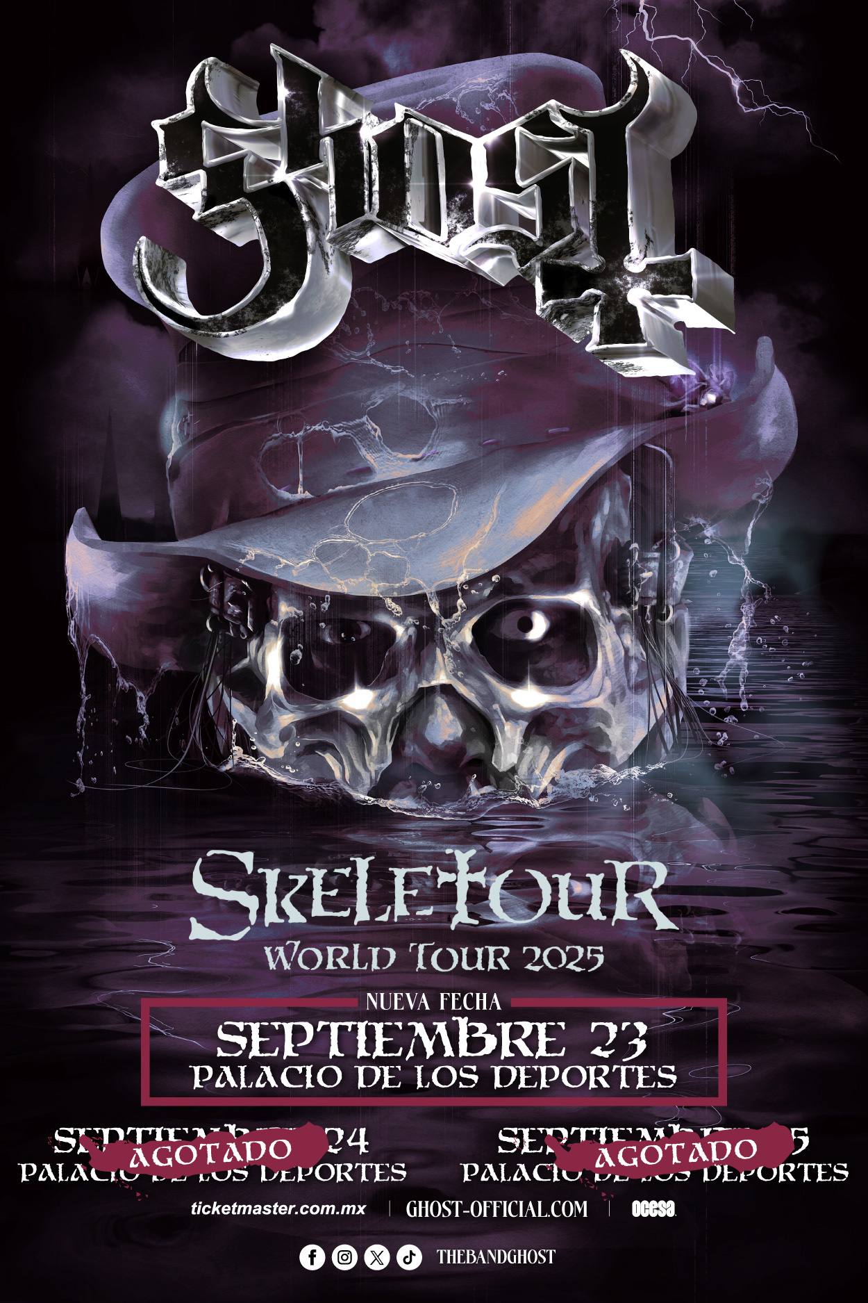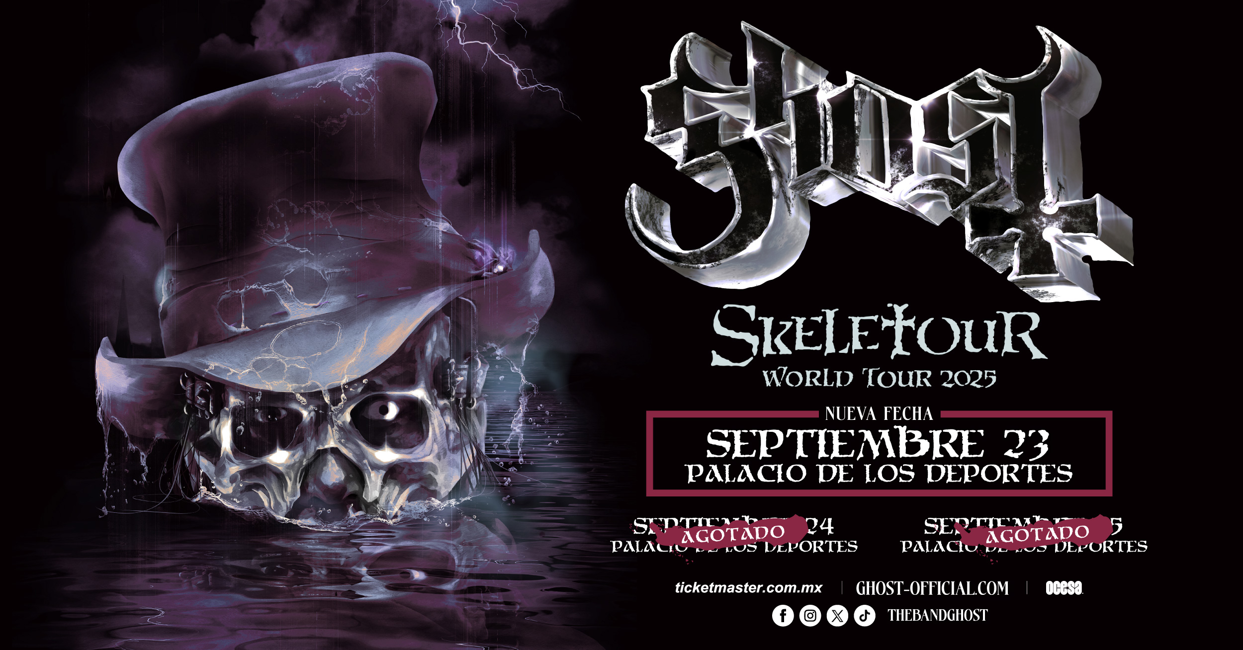 Debido a la abrumadora demanda de los fans, GHOST anunció una tercera fecha en México. Los icónicos rockeros suecos ganadores del GRAMMY comenzaron su recorrido mundial la noche del 15 de abril en el AO Arena de Manchester, Reino Unido, y han encabezado decenas de los escenarios más importantes del mundo. Entre ellos, destaca su primer concierto en el icónico Madison Square Garden de Nueva York.