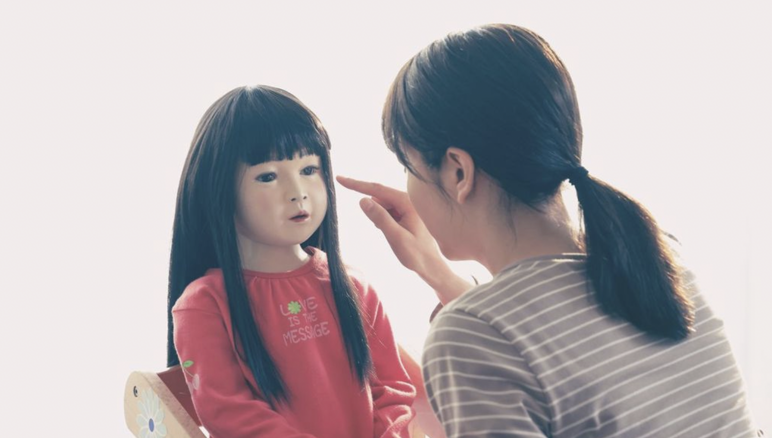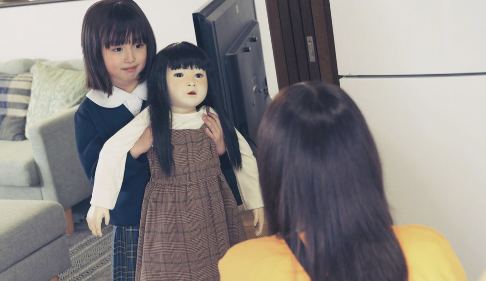 Yaguchi desarrolla el horror desde la intimidad doméstica. No hay abuso de efectos especiales ni un desfile interminable de sobresaltos; en cambio, el director se apoya en el diseño sonoro, la iluminación tenue y los encuadres cerrados para generar una sensación de vigilancia constante. La casa espacio que en teoría debería ser refugio se convierte en un escenario opresivo donde cada sombra parece ocultar un movimiento imperceptible de la muñeca. El terror se construye a partir de pequeñas alteraciones: un sonido aislado, un objeto fuera de lugar, una mirada vacía que adquiere vida propia. Esta aproximación minimalista, típica del horror japonés, potencia la angustia sin necesidad de caer en lo estridente.