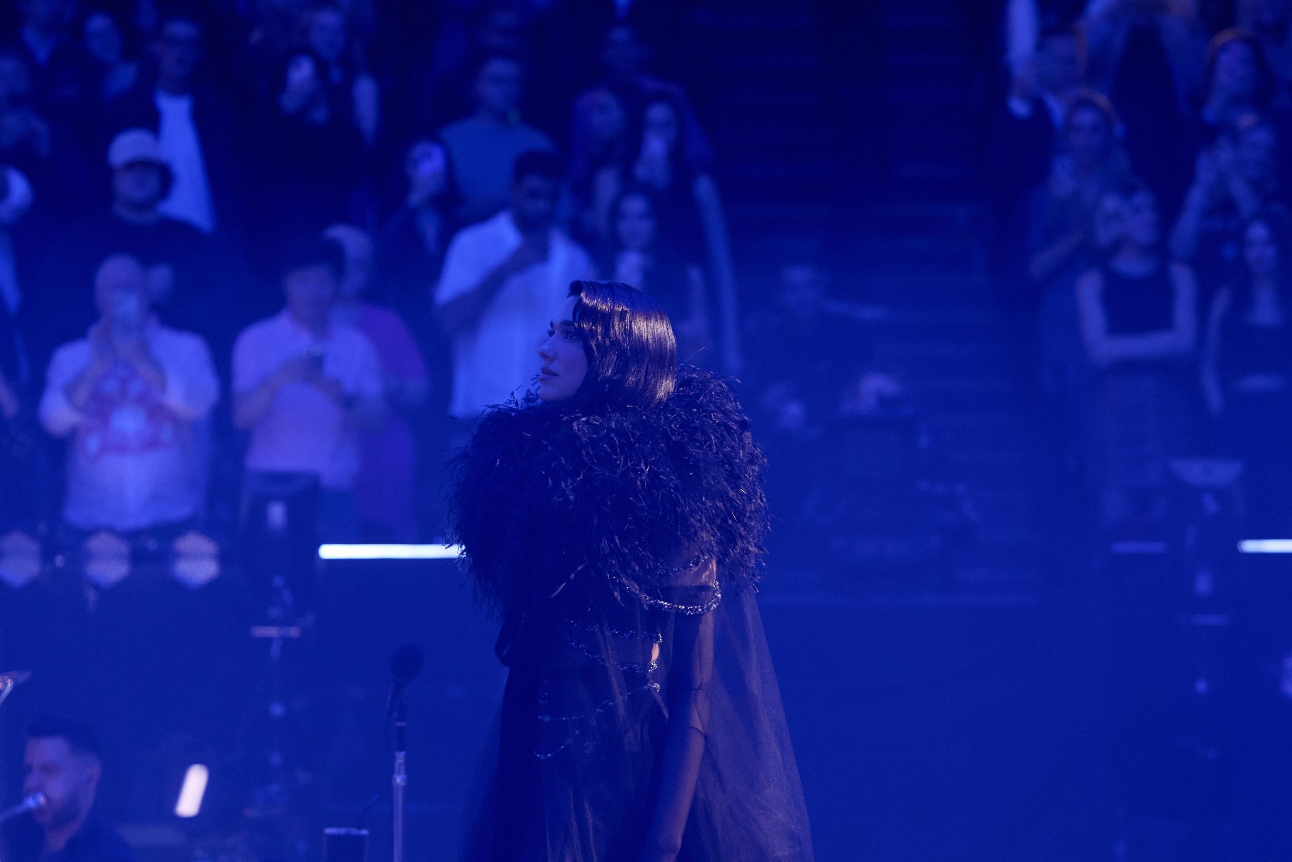 Acompañada por casi 100 artistas en escena, entre ellos una orquesta de 53 músicos y un coro en vivo, la intérprete reinterpreta éxitos como Levitating, Don’t Start Now y New Rules, junto con nuevos temas de Radical Optimism como These Walls y Training Season. Cada pieza adquiere una fuerza renovada con arreglos orquestales que envuelven al público en un ambiente vibrante y emotivo.