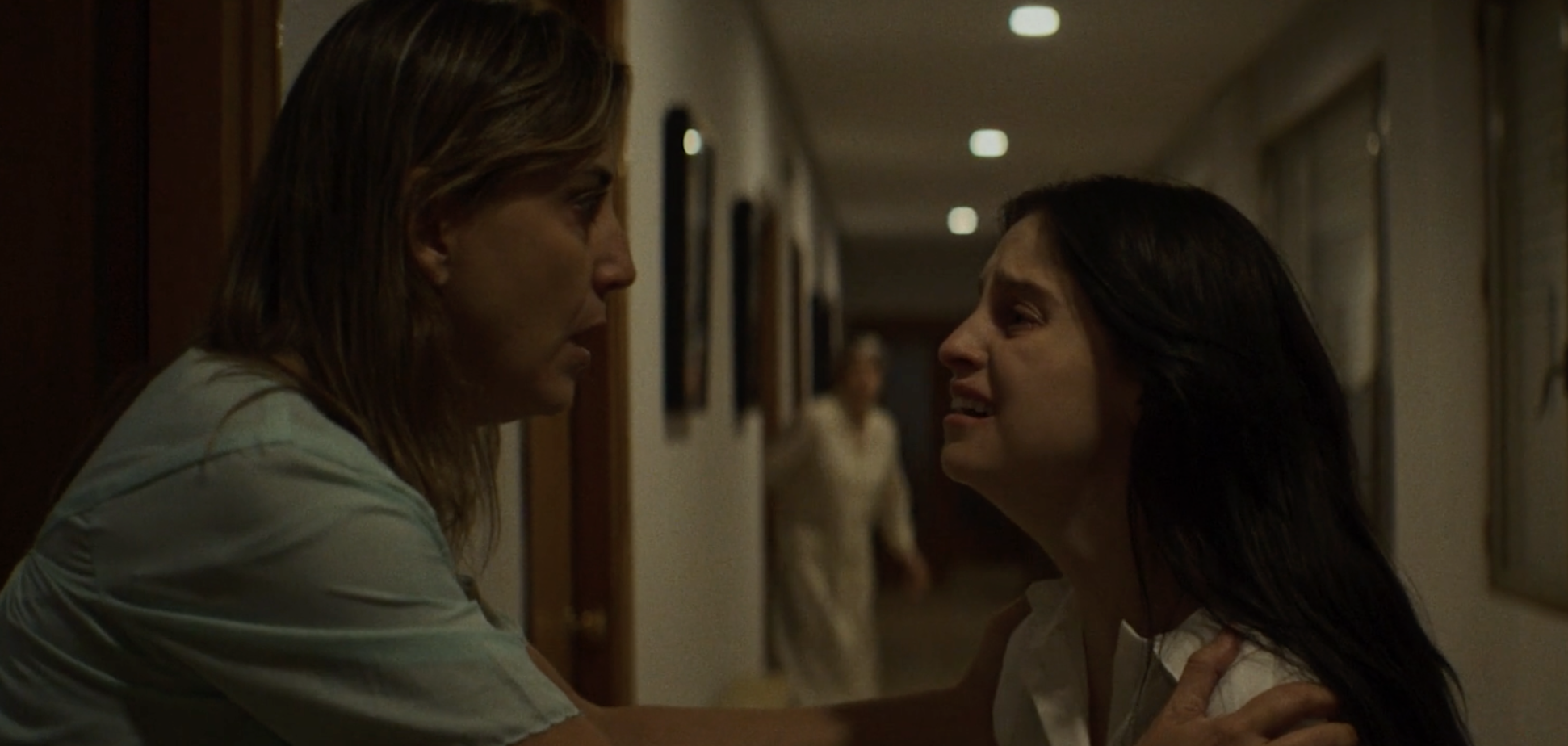En términos formales, Barreira apuesta por una atmósfera opresiva sostenida en encuadres cerrados y una iluminación sombría que refuerza la sensación de encierro. Los pasillos largos, las puertas que crujen y los rezos susurrados construyen un ambiente que, si bien no es innovador, resulta efectivo. Hay sobresaltos bien calculados apoyados en el diseño sonoro que cumplen con su cometido inmediato: inquietar al espectador y mantener la tensión durante buena parte del metraje.