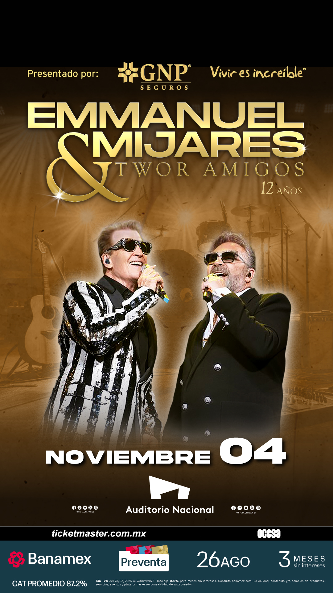 No te pierdas la oportunidad de ser parte de esta celebración musical. Corre por tus boletos y vive en persona la exitosa historia de Emmanuel & Mijares en el Auditorio Nacional. ¡Te esperamos para cantar, bailar y revivir los mejores recuerdos de una era dorada!