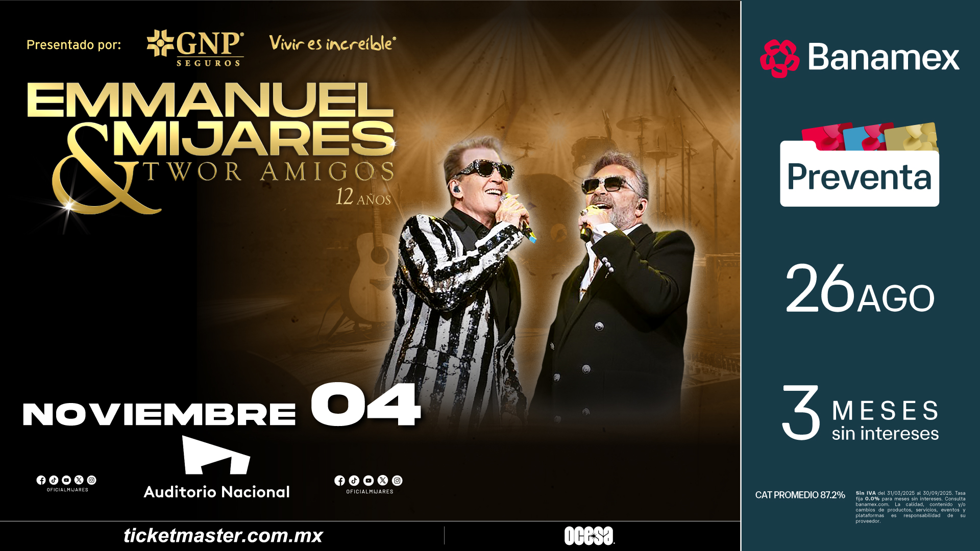 Preventa Banamex: 26 de agosto, 11:00 a.m.