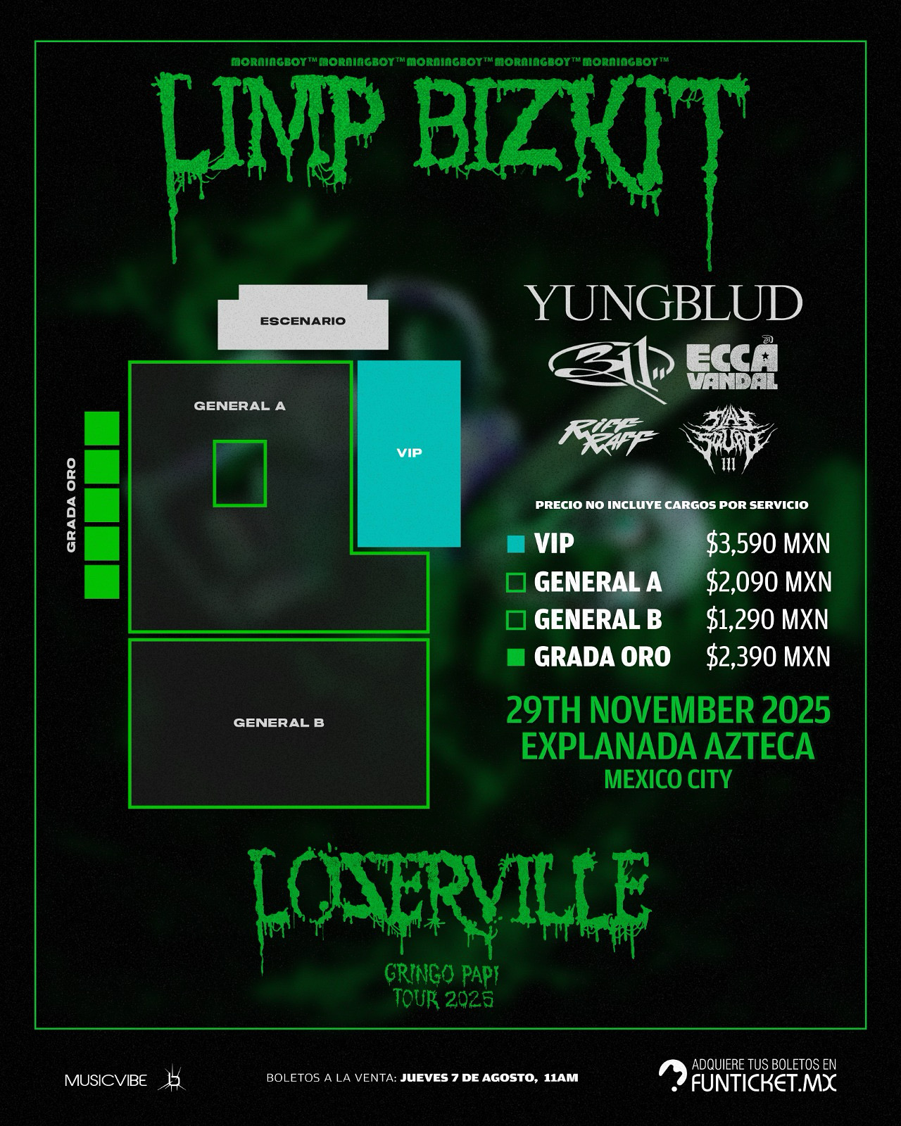 Keep rollin’ baby! Ya sabes, Limp Bizkit + invitados especiales el próximo 29 de noviembre en la Explanada Azteca (CDMX), presentados por MusicVibe.