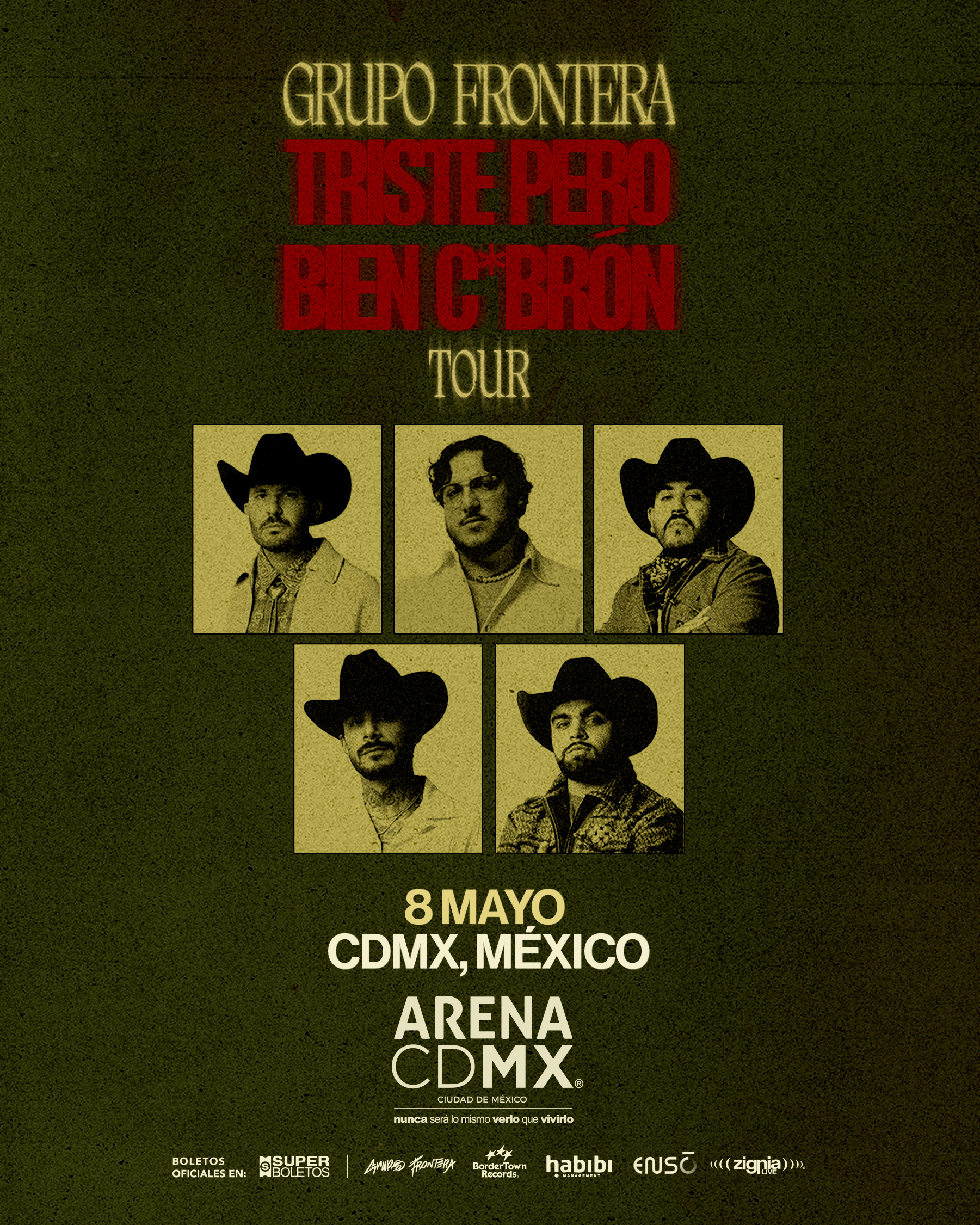 Con Triste pero bien c*brón Tour, GRUPO FRONTERA abre un nuevo capítulo en su carrera, llevando su sonido y su energía a nuevas audiencias alrededor del mundo. Tras conquistar escenarios en Estados Unidos y acumular miles de millones de reproducciones globales, la agrupación consolida su expansión internacional y reafirma su papel como una de las voces más representativas del regional mexicano moderno.