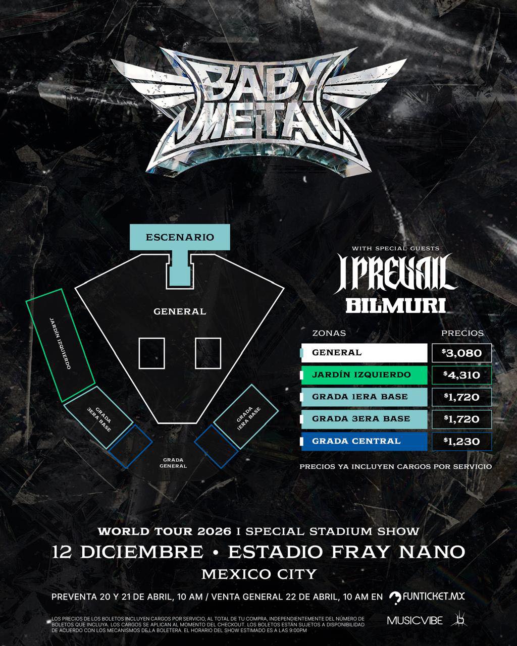 La fuerza imparable del metal japonés regresa al país. BABYMETAL anuncia oficialmente su esperado regreso a México como parte de su gira mundial 2026, con un espectacular concierto el 12 de diciembre de 2026 en el Estadio Fray Nano de Ciudad de México.