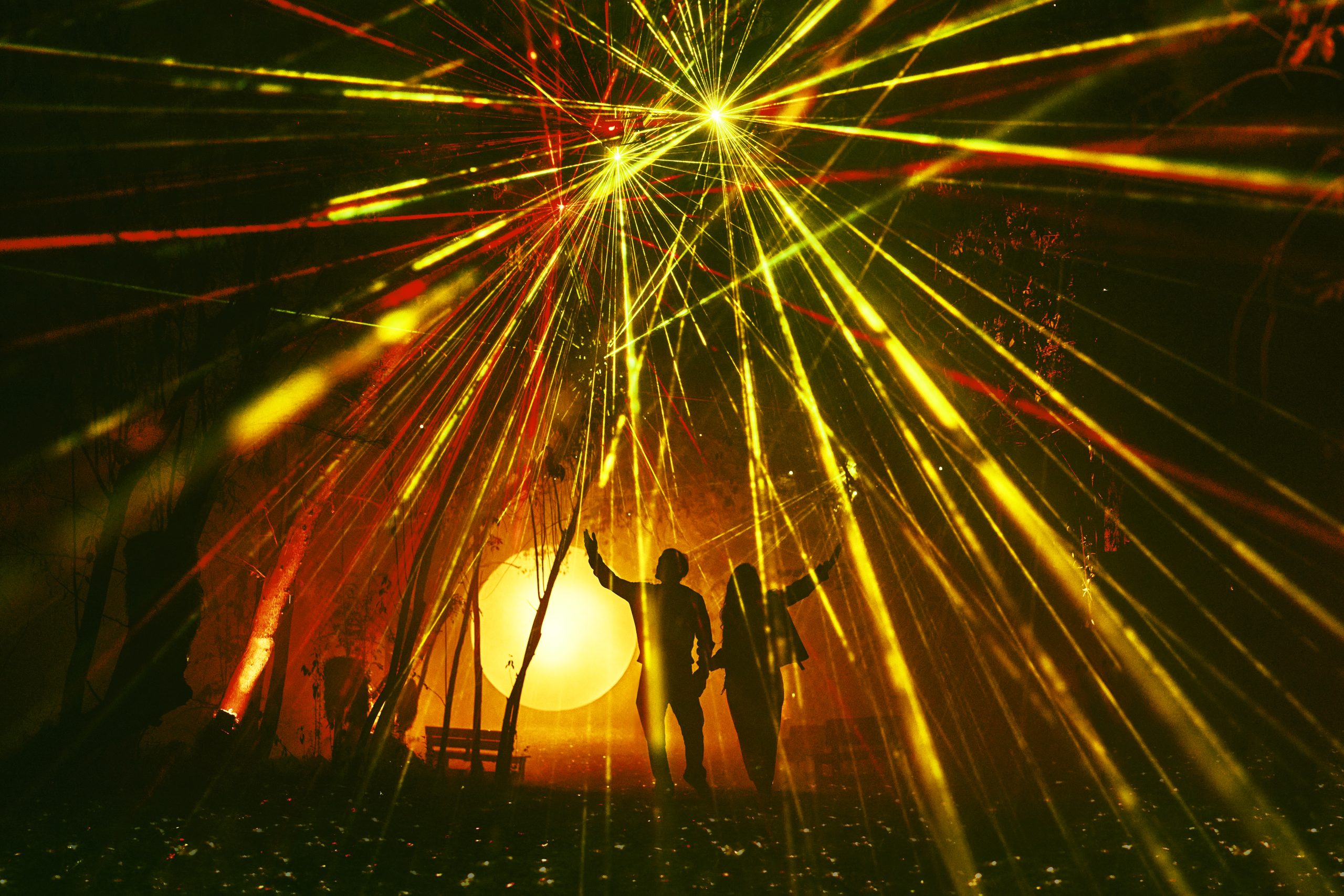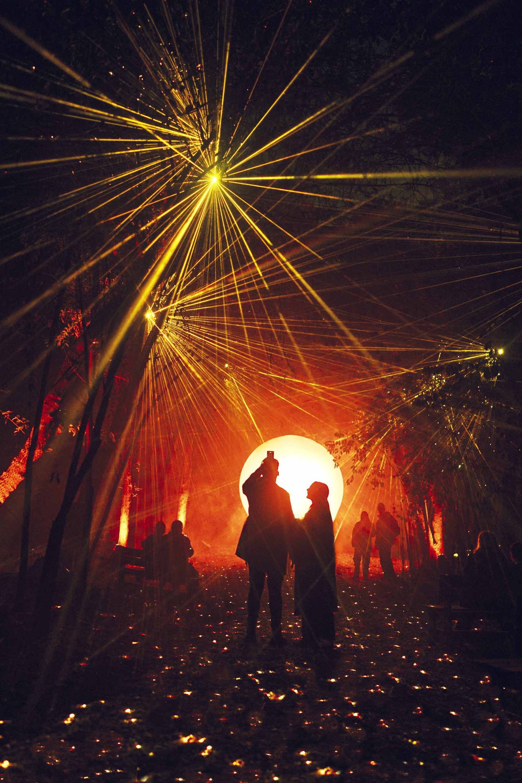 - Al Atardecer: En esta zona inmersiva, un juego de luces y sombras aparecen inspirados en los atardeceres de la naturaleza. Al caminar por esta instalación, los visitantes se ven envueltos en diferentes colores que los convierten en siluetas en medio del paisaje nocturno.