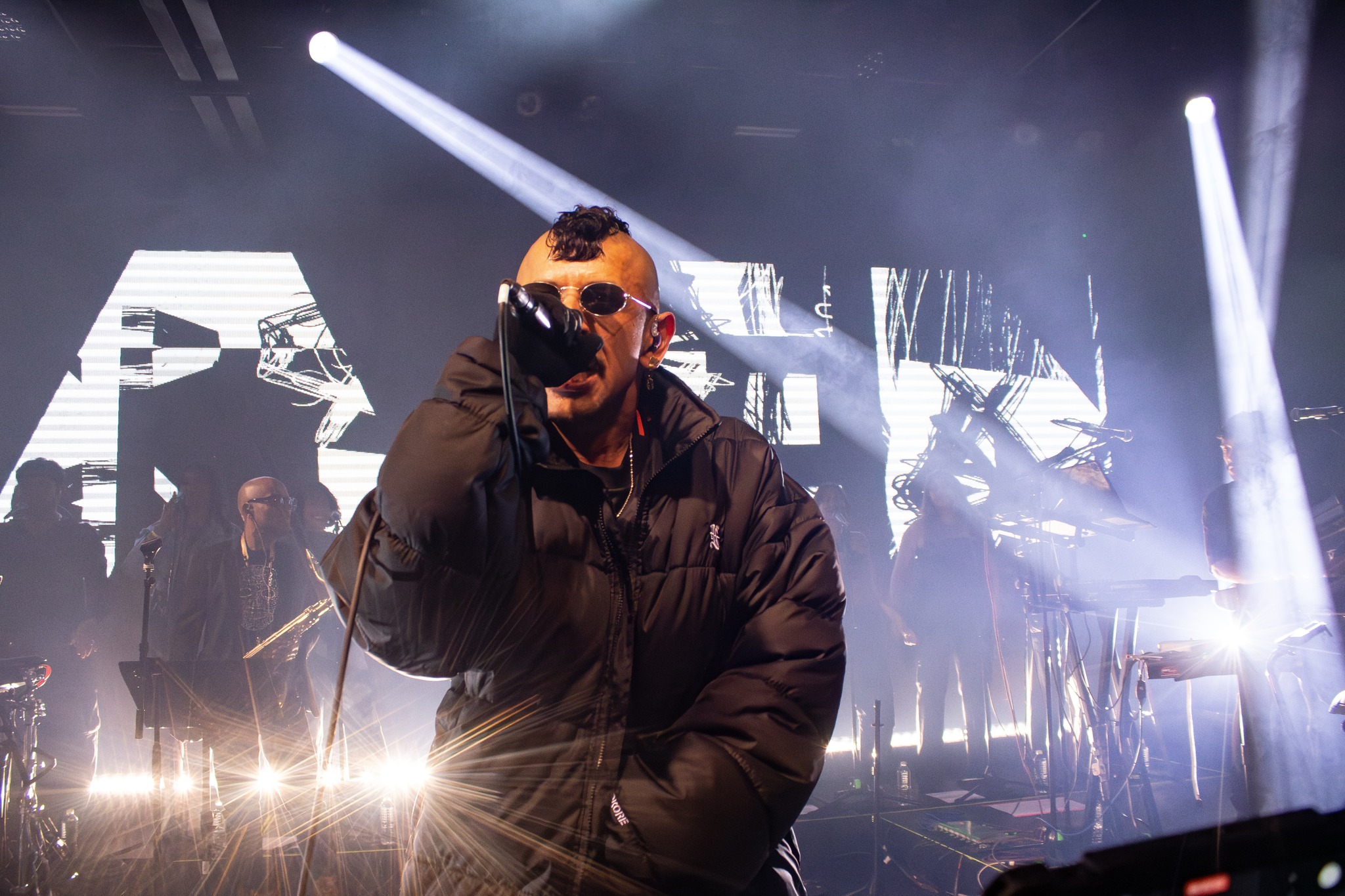 Uno de los momentos más significativos de la noche ocurrió cuando la barrera entre escenario y audiencia desapareció por completo. El vocalista descendió para interactuar directamente con los asistentes, generando una cercanía poco habitual que intensificó la experiencia y reafirmó el carácter orgánico del show. Lejos de una ejecución distante, el concierto se sintió como un intercambio constante de energía.