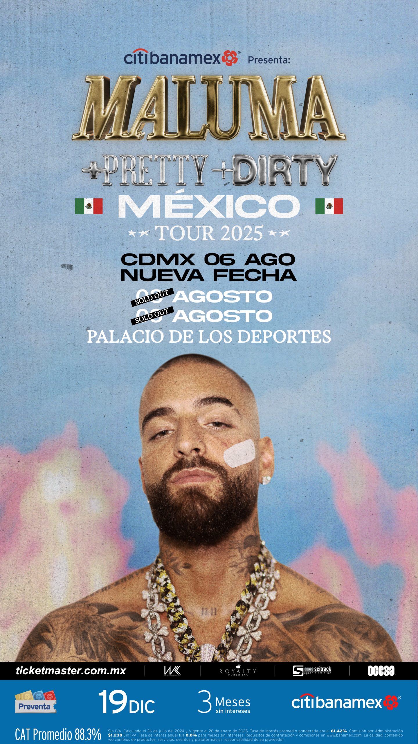 El ídolo global de la música latina arranca la fiesta este 6 de agosto, y tras agotar boletos en tiempo récord, anunció una segunda fecha para el 8, y una más el 9, sensualidad y éxitos que han dado la vuelta al mundo. ¿El pretexto? Presentar su nueva etapa con la gira +Pretty +Dirty, que promete más flow, más beats y una producción que te va a volar la cabeza.