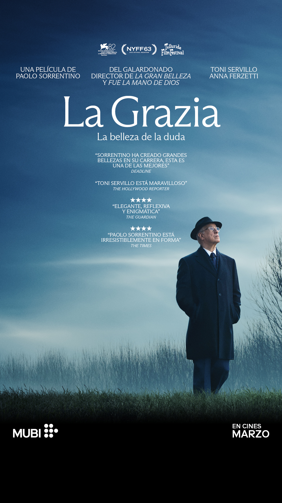De Paolo Sorrentino, cineasta ganador de la Academia y el BAFTA, LA GRAZIA: LA BELLEZA DE LA DUDA es una exploración exhaustiva del amor, el deber y la libertad personal. Toni Servillo – ganador del premio a Mejor Actor en el Festival Internacional de Venecia 2025- protagoniza el papel del presidente ficticio de Italia en final de mandato, Mariano De Santis, que se enfrenta a dilemas morales y personales con la ayuda de su confidente y hija, Dorotea (Anna Ferzetti). Con la visión poética característica de Sorrentino y una banda sonora evocadora, esta sincera obra maestra es una reflexión íntima sobre la paternidad, la conciencia y la eterna pregunta: ¿a quién pertenecen nuestros días?