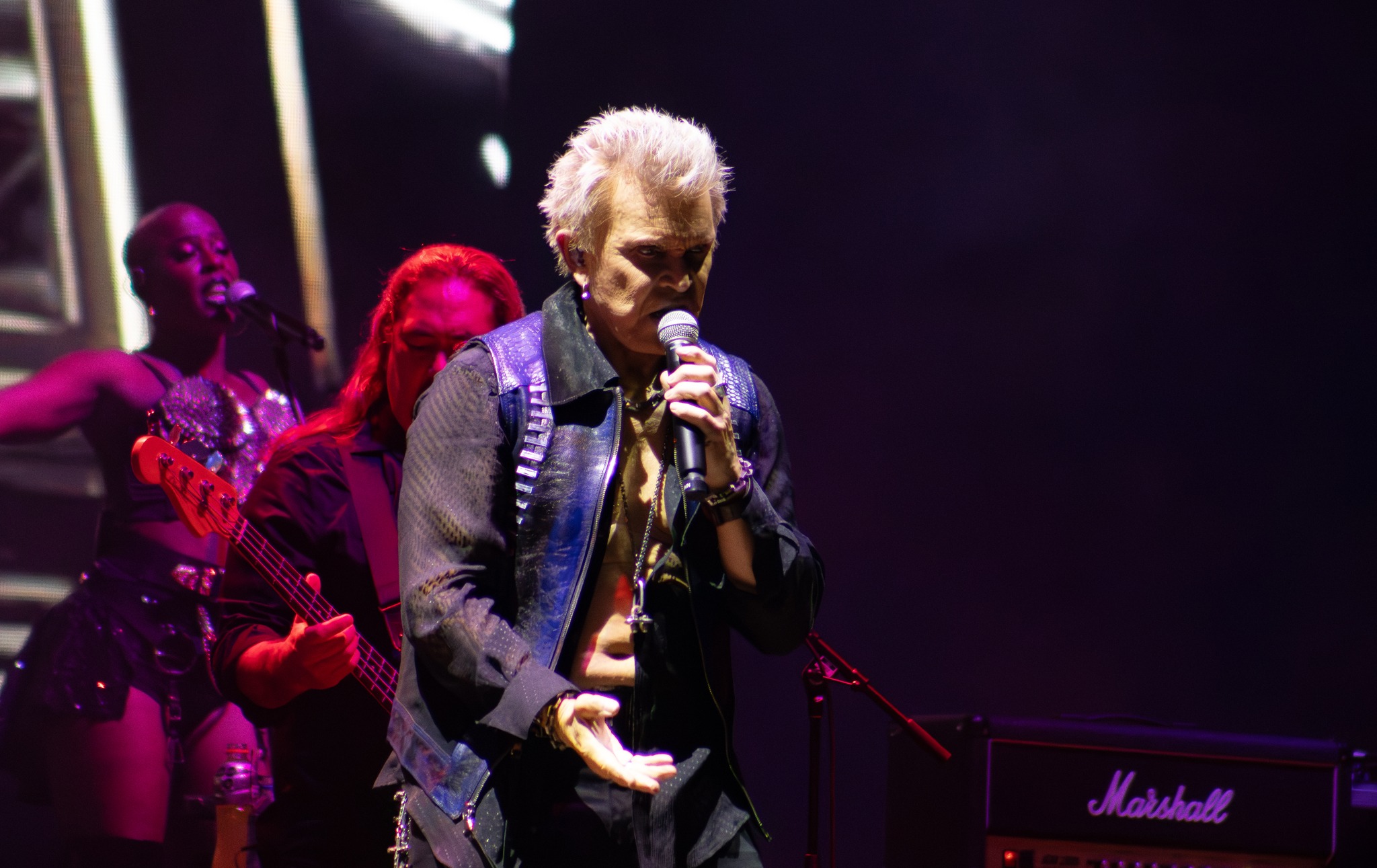 La noche cayó de lleno cuando Billy Idol subió al Escenario Vivir es Increíble. Su presencia, sostenida en décadas de historia, convirtió esa franja del festival en un homenaje vivo al rock. Interpretó sus himnos sin concesiones, con esa mezcla de rudeza y carisma que lo caracteriza, mientras generaciones distintas entonaban sus clásicos como si formaran parte de un archivo emocional compartido. En paralelo, Enjambre y El Gran Silencio dividieron al público en dos pulsos distintos pero complementarios: unos inclinándose hacia la nostalgia melódica del rock alternativo mexicano, otros entregándose al torbellino de ska, barrio y celebración que El Gran Silencio sabe llevar como bandera.