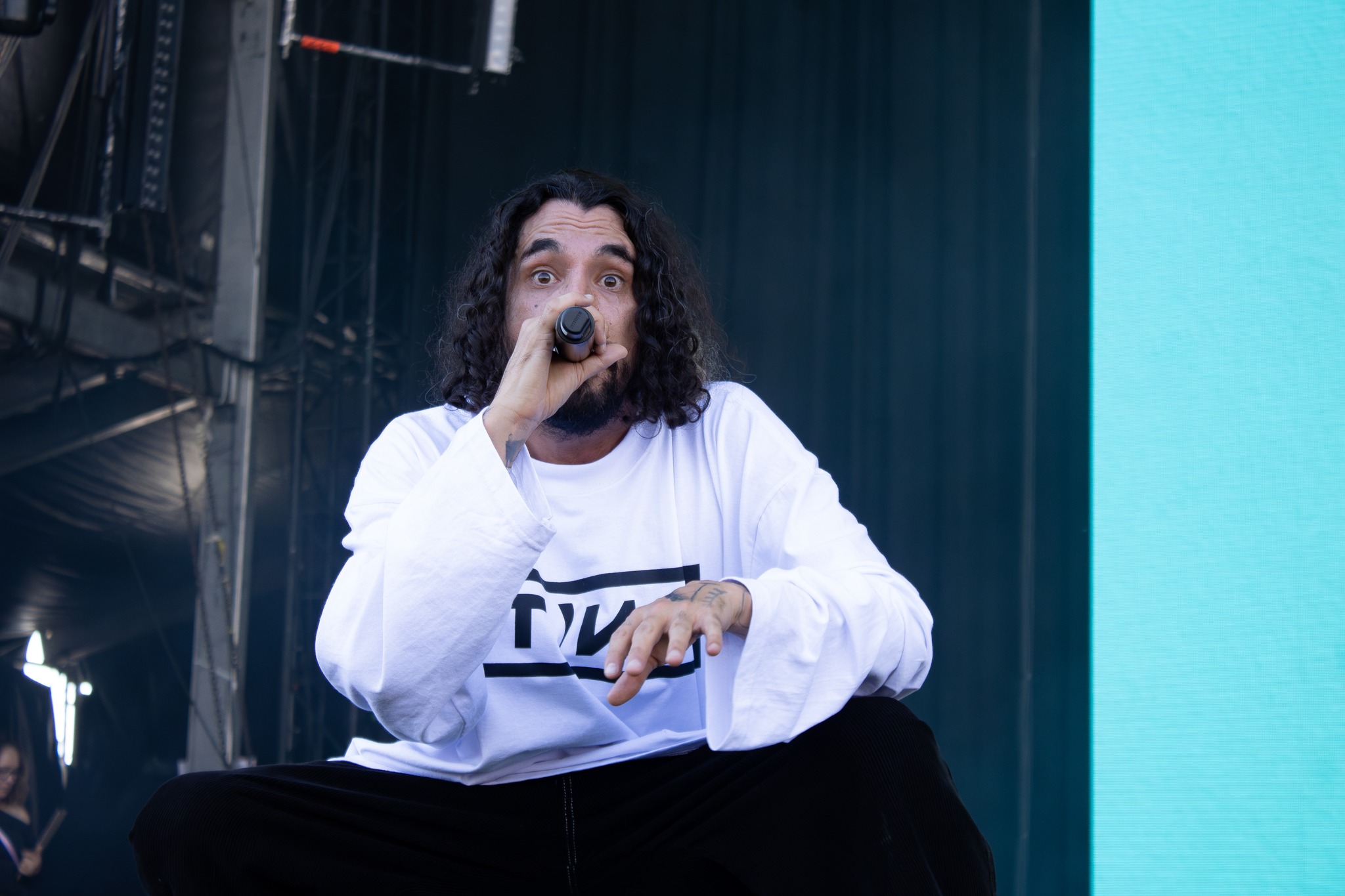El bloque de media tarde avanzó como un engranaje bien aceitado. En el Escenario Vivir es Increíble irrumpió Elsa y Elmar, portando una energía luminosa que contrastaba con el cielo aún sin decidirse entre nube y sol. Su set, íntimo pero expansivo, formó un puente emocional hacia la presentación de Carlos Sadness, quien minutos después inundó el espacio con su pop melancólico y sus arreglos coloristas. El autor catalán presentó un repertorio equilibrado, cálido, construido sobre una relación muy orgánica con el público que volvió sus canciones en un coro compartido más que en un acto unilateral. En paralelo, Joaquín Medina activó la Carpa Tecate con un discurso sonoro más directo y con guiños a distintos géneros alternativos, atrapando a quienes buscaban algo fuera del perímetro más pop del cartel.