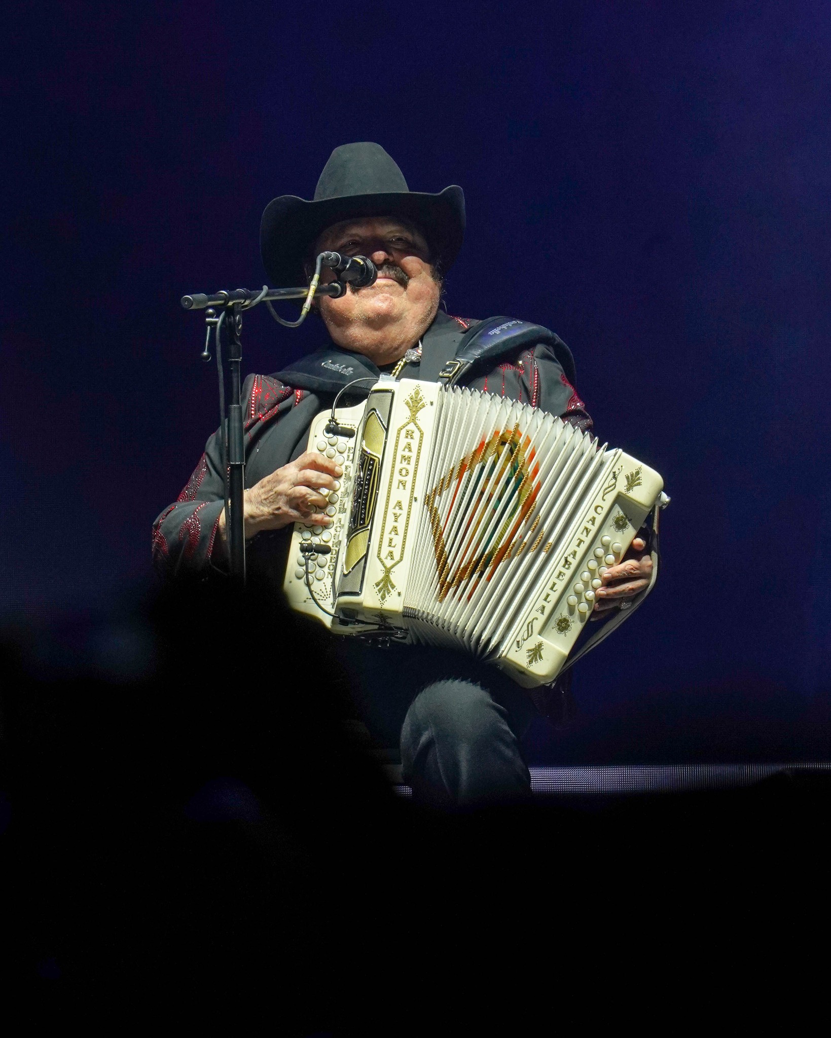 El show arrancó con cierto retraso, pero eso no hizo más que incrementar la tensión entre los asistentes. Cuando finalmente las luces se atenuaron y los primeros compases de acordeón se dejaron escuchar, el rugido del público fue inmediato. Ayala apareció acompañado de Los Bravos del Norte, su inseparable agrupación, y de golpe quedó claro que aquello no sería una velada cualquiera, sino una celebración masiva de la memoria musical de varias generaciones.