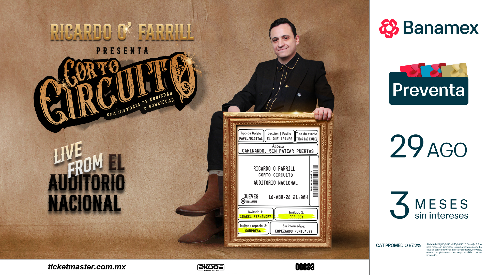 Por primera vez, el show de Ricardo O’Farrill, Corto Circuito, se presenta en el Auditorio Nacional. Este espectáculo marca el cierre de su gira por Latinoamérica, Estados Unidos, Canadá y Europa, y promete ser una noche muy especial.