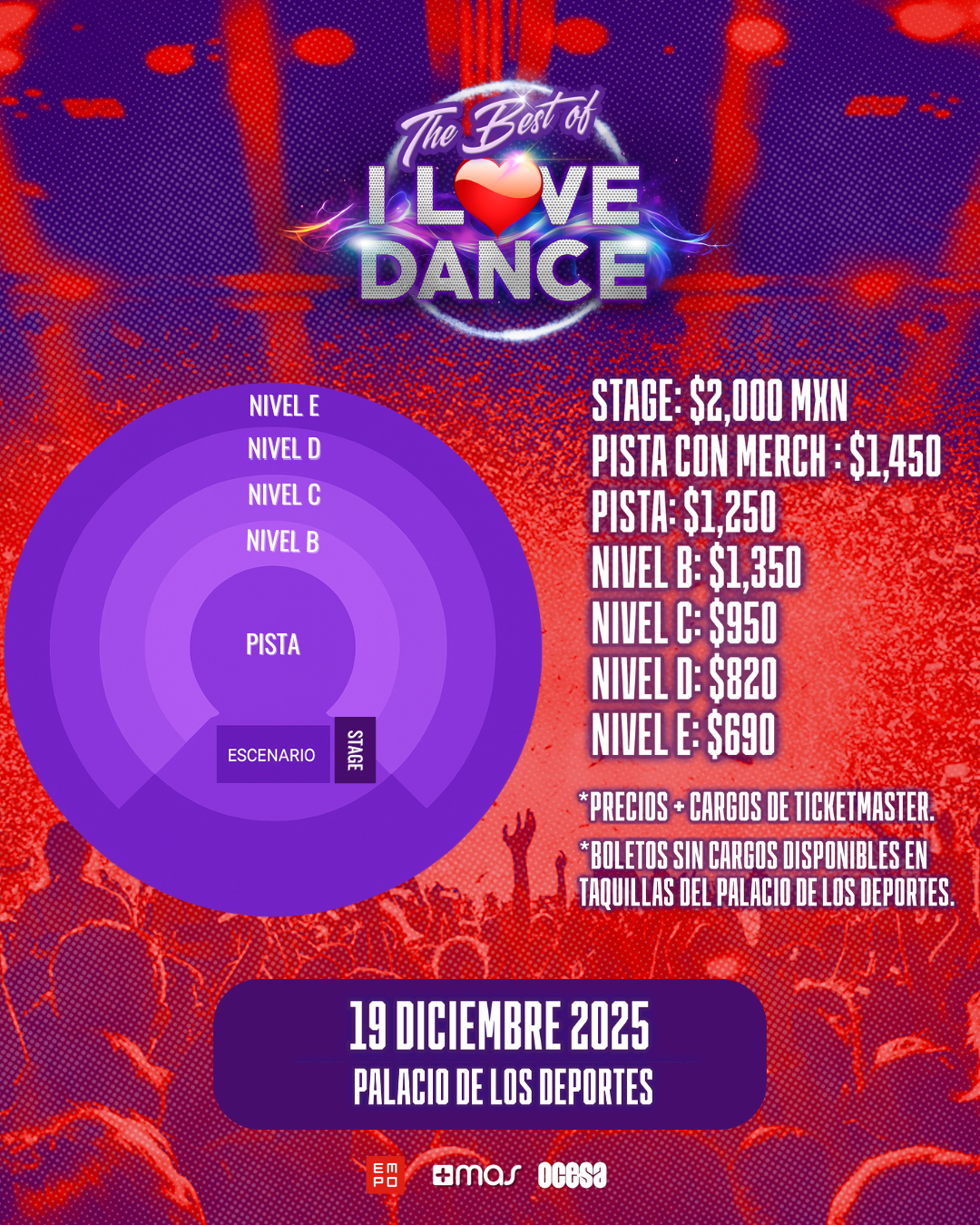 Este 19 de diciembre, el Palacio de los Deportes será escenario deThe Best of I LOVE DANCE, la edición más ambiciosa de este fenómeno musical que transforma la nostalgia en una experiencia viva, llena de ritmo, luces y emoción que atraviesa generaciones. Por primera vez, artistas que marcaron historia junto con nuevas estrellas del Eurodance y pop electrónico se reunirán en un solo escenario para crear un espectáculo inolvidable.