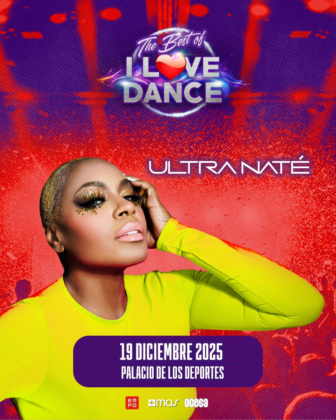 Ultra Naté se une a un line up histórico que reúne a las máximas leyendas del dance y eurodance: Alexia, Jenny Berggren de Ace of Base, C+C Music Factory, Corona, Crystal Waters, Masterboy & Beatrix Delgado, Lou Bega, Real McCoy, Damae exFragma, Dr. Alban, The Outhere Brothers, GuztavoMx, Whigfield, Reel 2 Real, Danzel, y más por anunciar, en un espectáculo conducido por Luisa Carrandi.