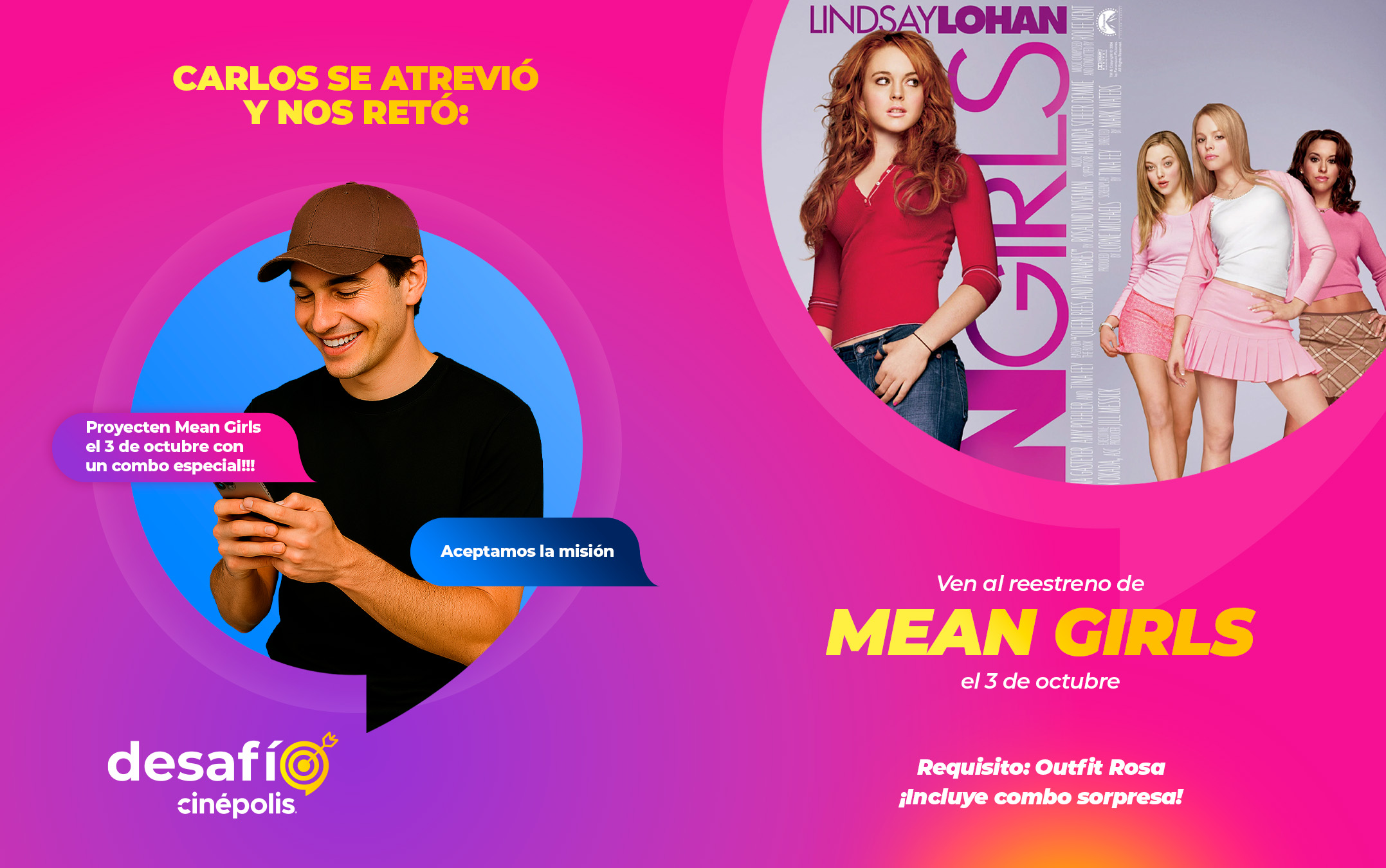 L@s cinéfilos ponen la idea, Cinépolis la convierte en experiencia. Eso es Desafío Cinépolis: una iniciativa que acepta y cumple los retos más creativos de la audiencia en redes sociales, reafirmando el compromiso de acercar el cine a las personas a través de experiencias únicas que trascienden la pantalla. De agosto a noviembre de 2025, las ideas más originales de los clientes Cinépolis podrán hacerse realidad y transformar la manera de vivir el cine.
