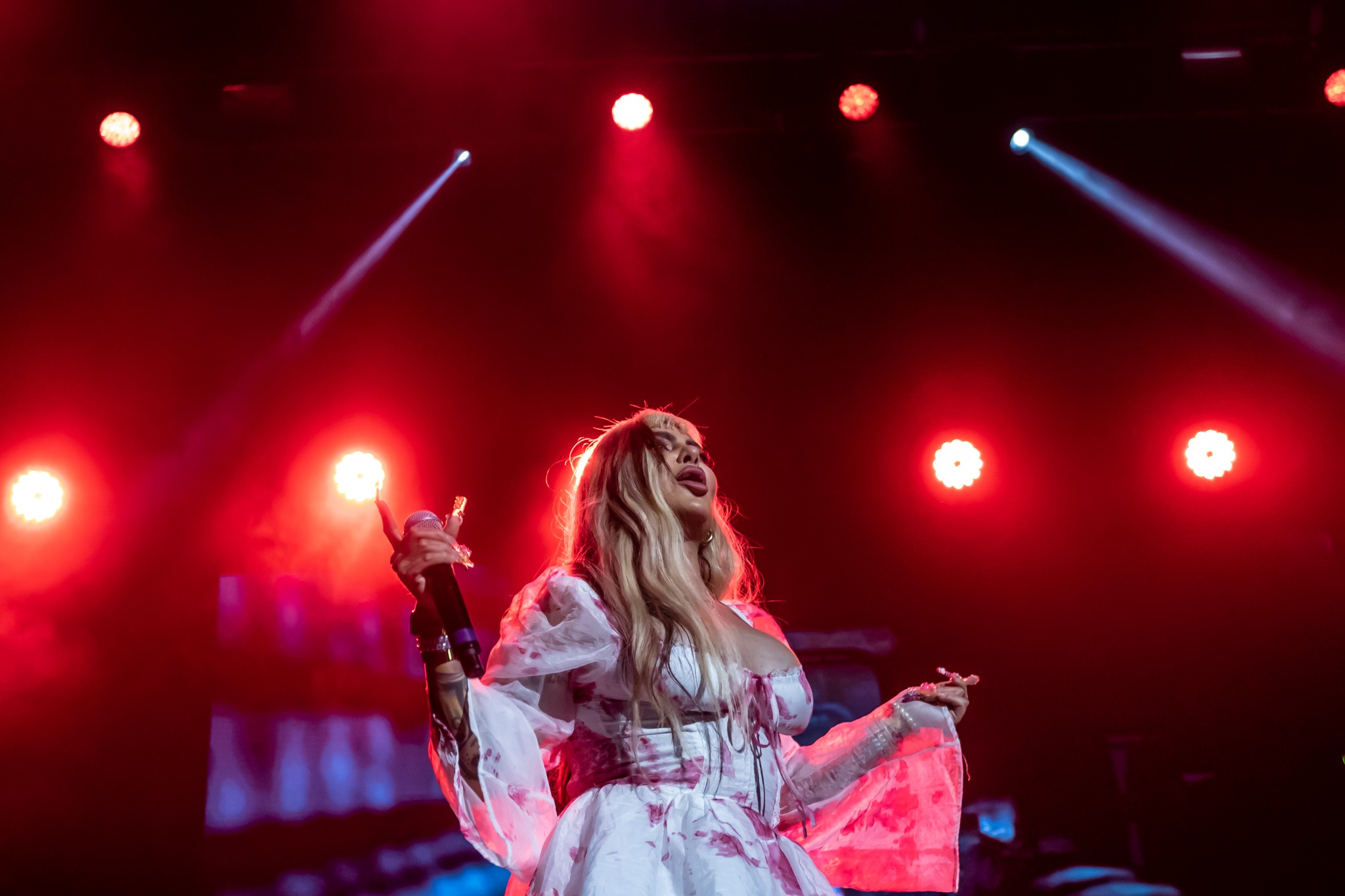 Como miembro destacado de la Familia Alzada, Yoss Bones ha dejado una huella imborrable en cada escenario donde ha actuado y éste no fue la excepción. Dentro de su repertorio, encontramos un recorrido por sus rimas: “Ando hasta la nube”, “Dopamina” y su canción: “Borracha de amor”, donde su público coreó con ella una y otra vez.