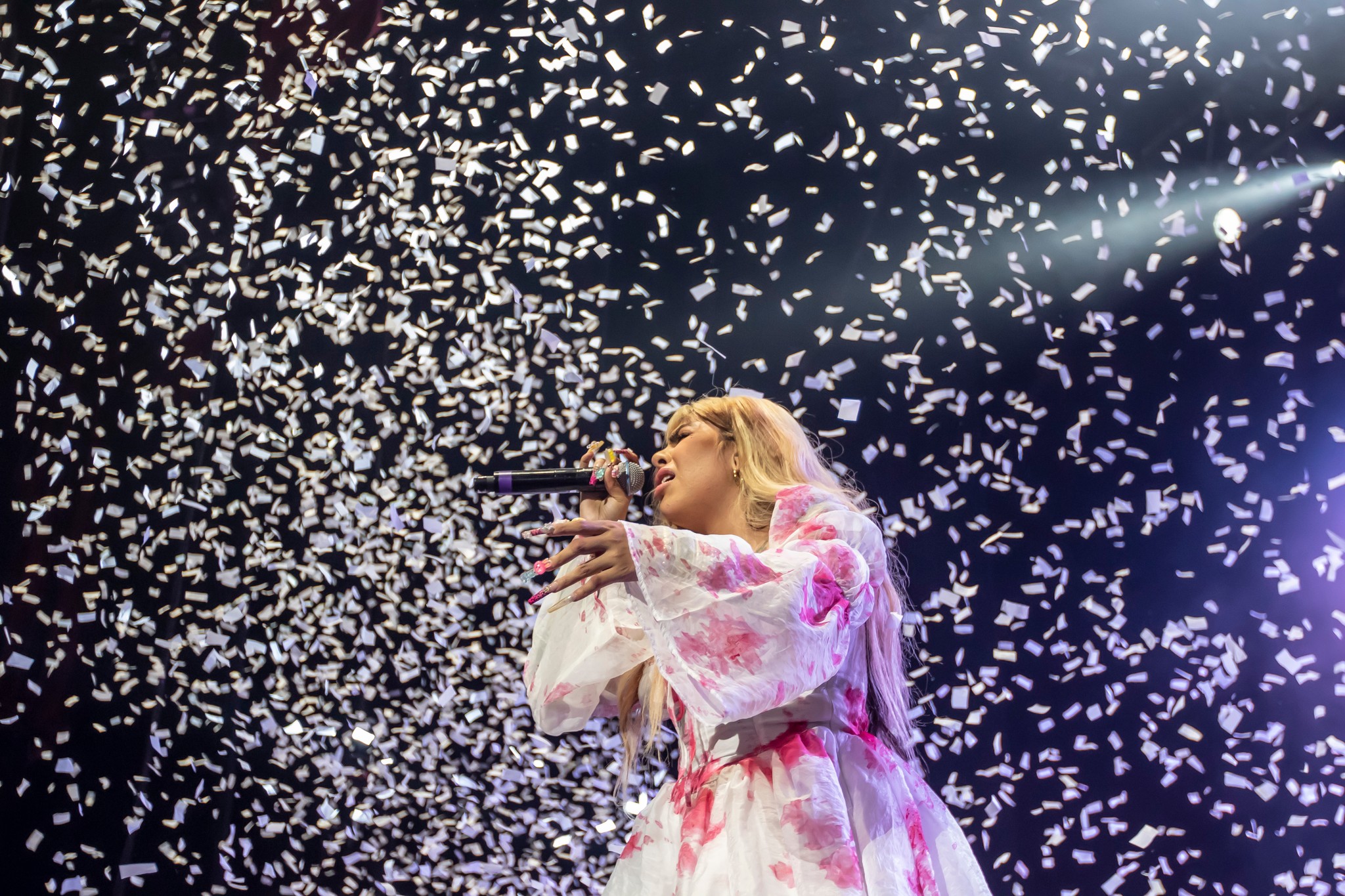 Desde los primeros minutos, el público respondió con entusiasmo a cada beat, coreando letras que hablan de lucha, identidad y resistencia. Acompañada de una banda en vivo y un oso gigante en el escenario que reforzaban la narrativa de sus canciones, Yoss repasó su repertorio con seguridad y cercanía, conectando profundamente con sus seguidores.