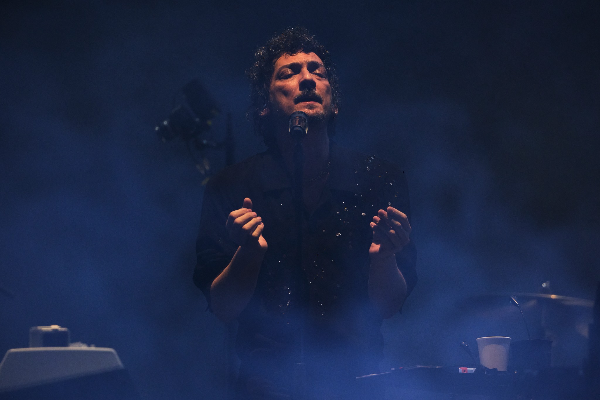 El recorrido musical abarcó 27 canciones, una auténtica travesía sonora que hizo repasar distintos capítulos de su historia. Himnos generacionales como “Miel” y “Vía Láctea” fueron coreados con fuerza por un ejército de voces que acompañaba a León Larregui en cada frase. El vocalista, con su estilo inconfundible, parecía dirigir un ritual colectivo más que un concierto, como si cada palabra pronunciada desde el escenario tuviera eco en miles de gargantas al unísono.
